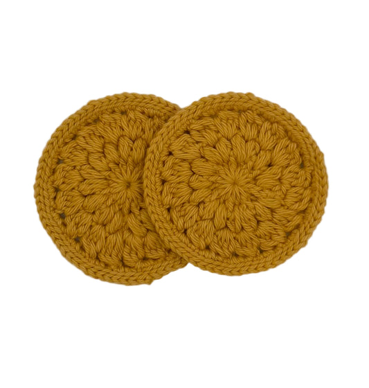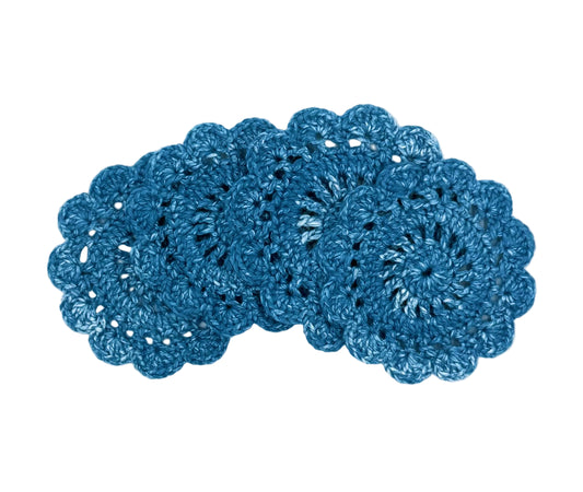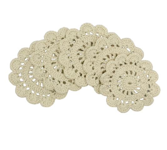 Handmade crochet coasters crafted with 100% cotton yarn. These coasters are absorbent, reusable, and gentle on your furniture while adding a decorative floral accent to your space.